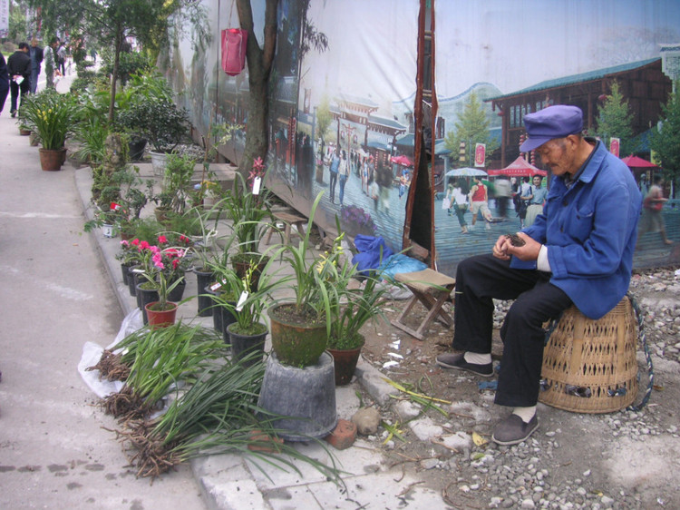 這個(gè)集市,嚴(yán)格地說(shuō)它只是山上居民買菜的一個(gè)菜市場(chǎng),主要是蔬菜瓜果肉蛋之類交易。意外的是,當(dāng)有個(gè)雙休日早上去買菜時(shí),正遇見(jiàn)了集市一角出售的花草。幾十盆花草順街邊擺放成長(zhǎng)長(zhǎng)的一排,儼然就是一個(gè)小小的花市。在這些出售的花草中,有月季花、吊金鐘、石榴、珊瑚樹、馬蹄蓮,都是些普通好養(yǎng)的花草。我圍在邊上看了看,發(fā)現(xiàn)這些花草中數(shù)月季的種類多:大紅的、粉的、黃的、白的、梅紅的,且這些花株大多去掉了花盆,但根上卻帶著一坨土。我看中了其中一盆,但看到選花的人多,便轉(zhuǎn)身去買菜。