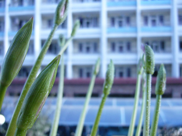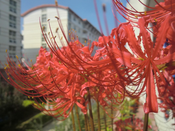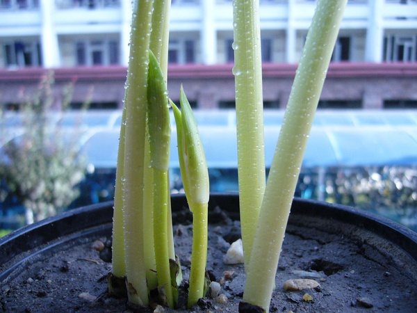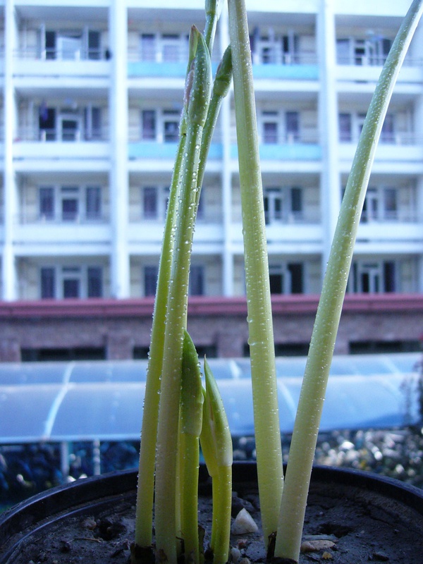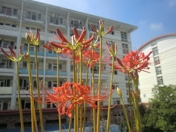 有一次從校園圖書館旁邊走的時(shí)候,發(fā)現(xiàn)花池里面長出了一些芽,不知道是什么,但是覺得很好看,就挖了一大坨花球回來種。
