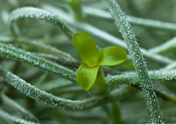 空氣草沒有土壤就可以生長,家庭種植可以把它懸掛在空中,經(jīng)常噴水,它就可以長的很茂盛。